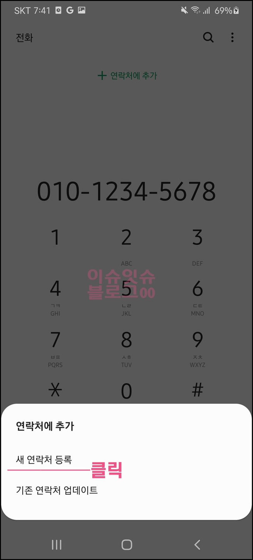새 연락처 등록 / 기존 연락처 업데이트 << 두가지가 뜨는데 이미 기존 연락처에 있는 사람은 카카오톡에 떠있을 확률이 높다. 새로운 전화번호를 저장하는 것이므로 <새 연락처 등록>을 클릭한다.