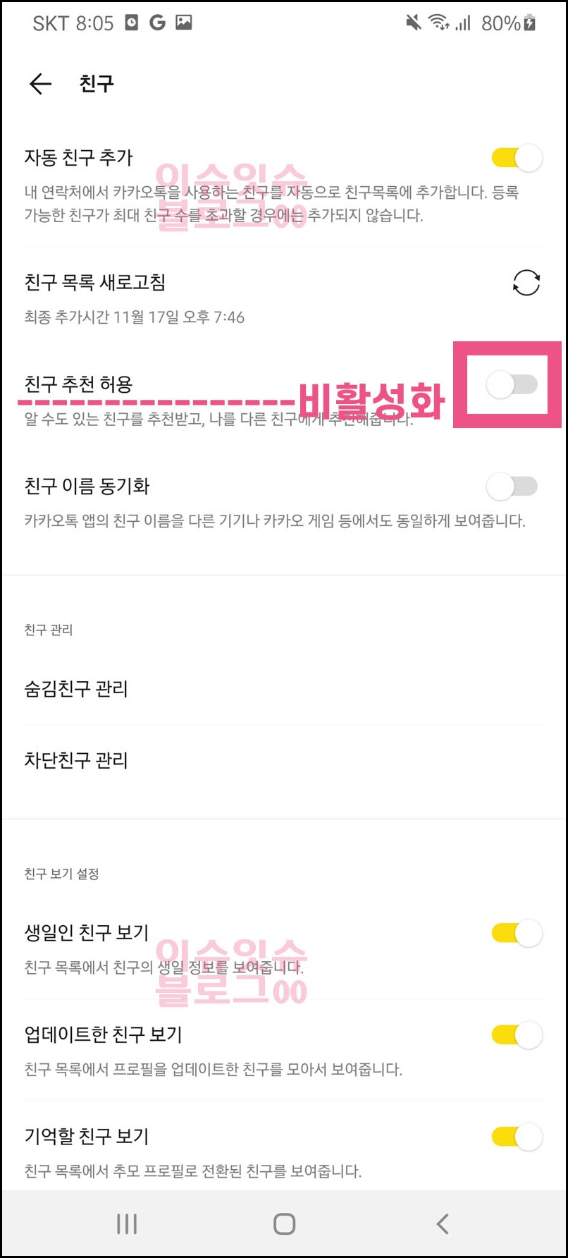 카카오톡 친구추가 거부 방법