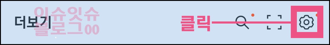 카톡을 실행하면 오른쪽 하단에 점 3개가 보이는가? · · · 이 점3개를 클릭하면 더보기 화면이 나오는데 이 화면에서 오른쪽에 있는 톱니바퀴(설정)를 클릭하자.